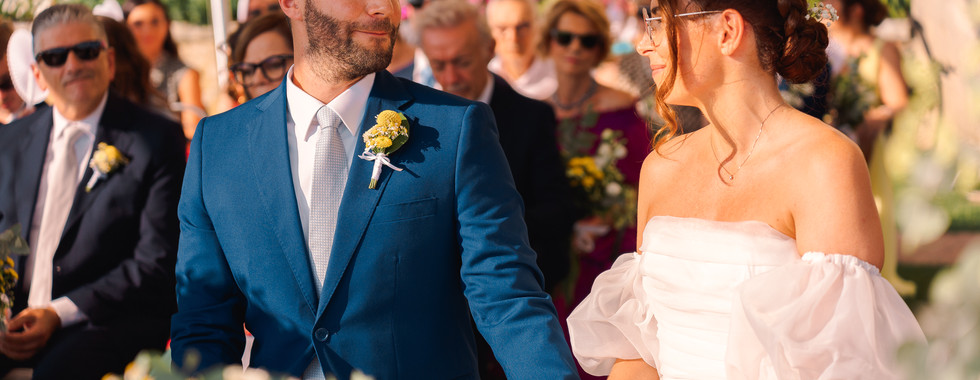 Quando gli ospiti sono arrivati sulla splendida terrazza di Le Vescovane, la vista mozzafiato ha preparato il terreno per una cerimonia romantica. Francesca, raggiante nel suo elegante abito, e Nicola, elegante nel suo completo, si sono scambiati i voti con sorrisi genuini che irradiavano la loro felicità. Il caldo sole ha completato il loro amore, creando un'atmosfera magica che ha avvolto tutti i presenti.