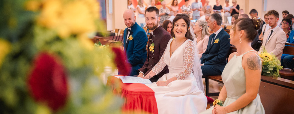 La cerimonia si è svolta in una chiesa accogliente, dove l'atmosfera era carica di emozione. Ho amato il modo in cui Giorgia e Simone si sono guardati, le loro espressioni genuine parlavano più di mille parole. Non ci sono state pose forzate, solo momenti veri che ho cercato di catturare con la mia macchina fotografica.